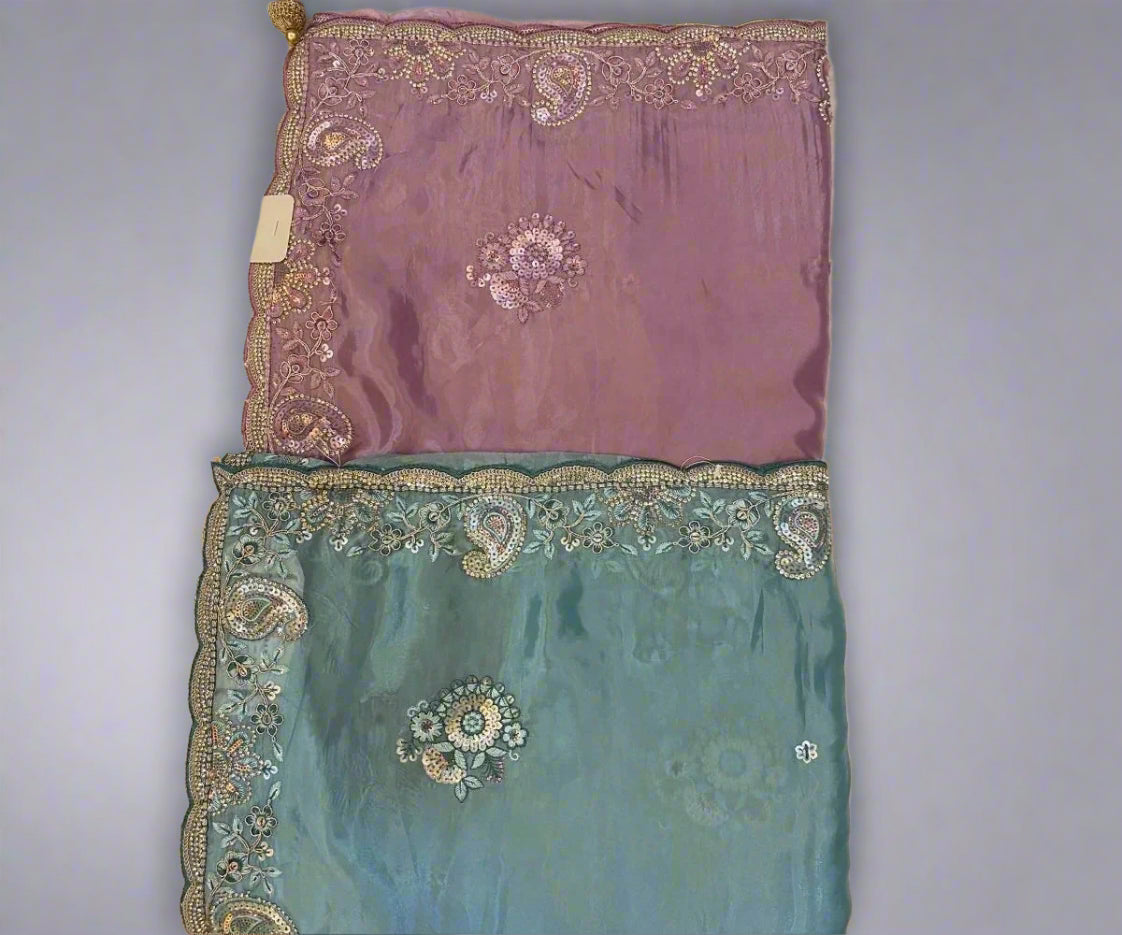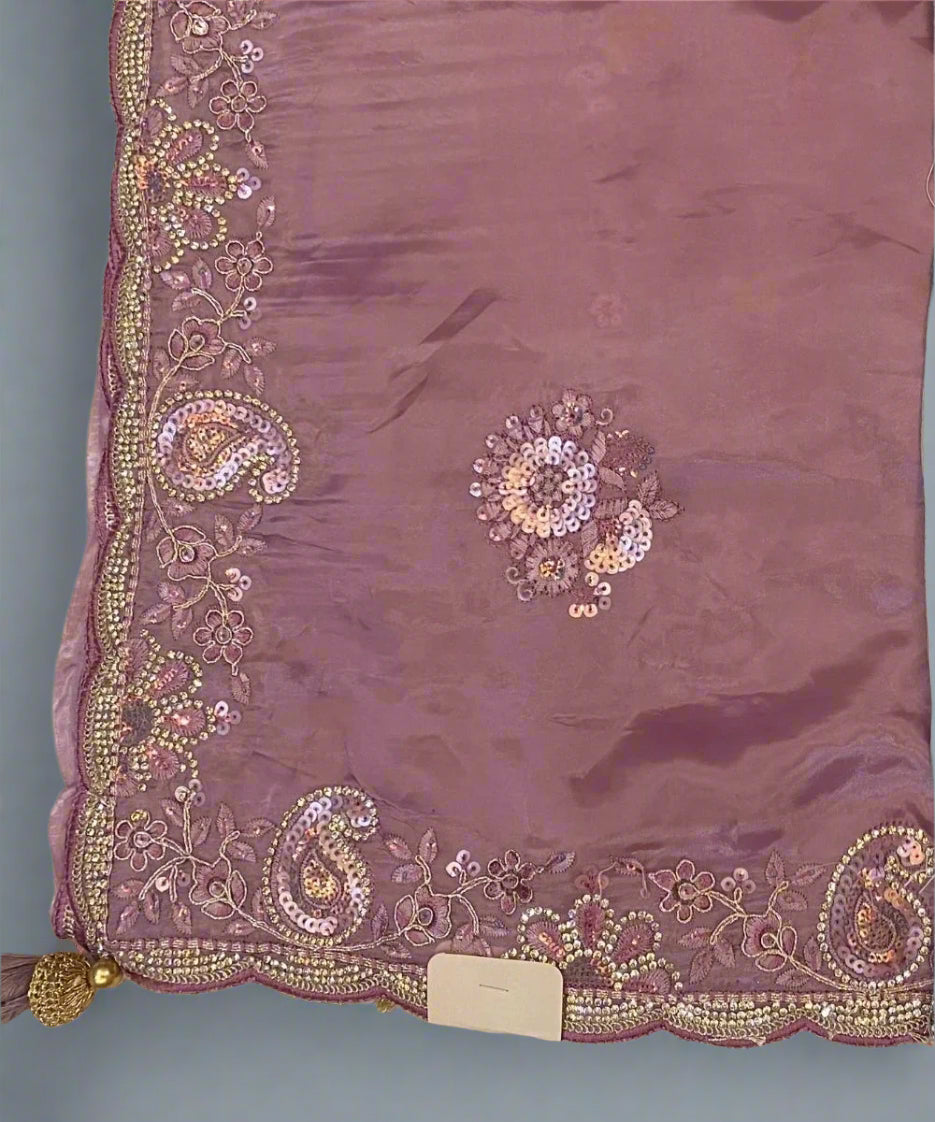 - Description: It's a pretty, paisely embroidered saree that comes with a matching blouse. It's perfect for festive, party & wedding occasions.