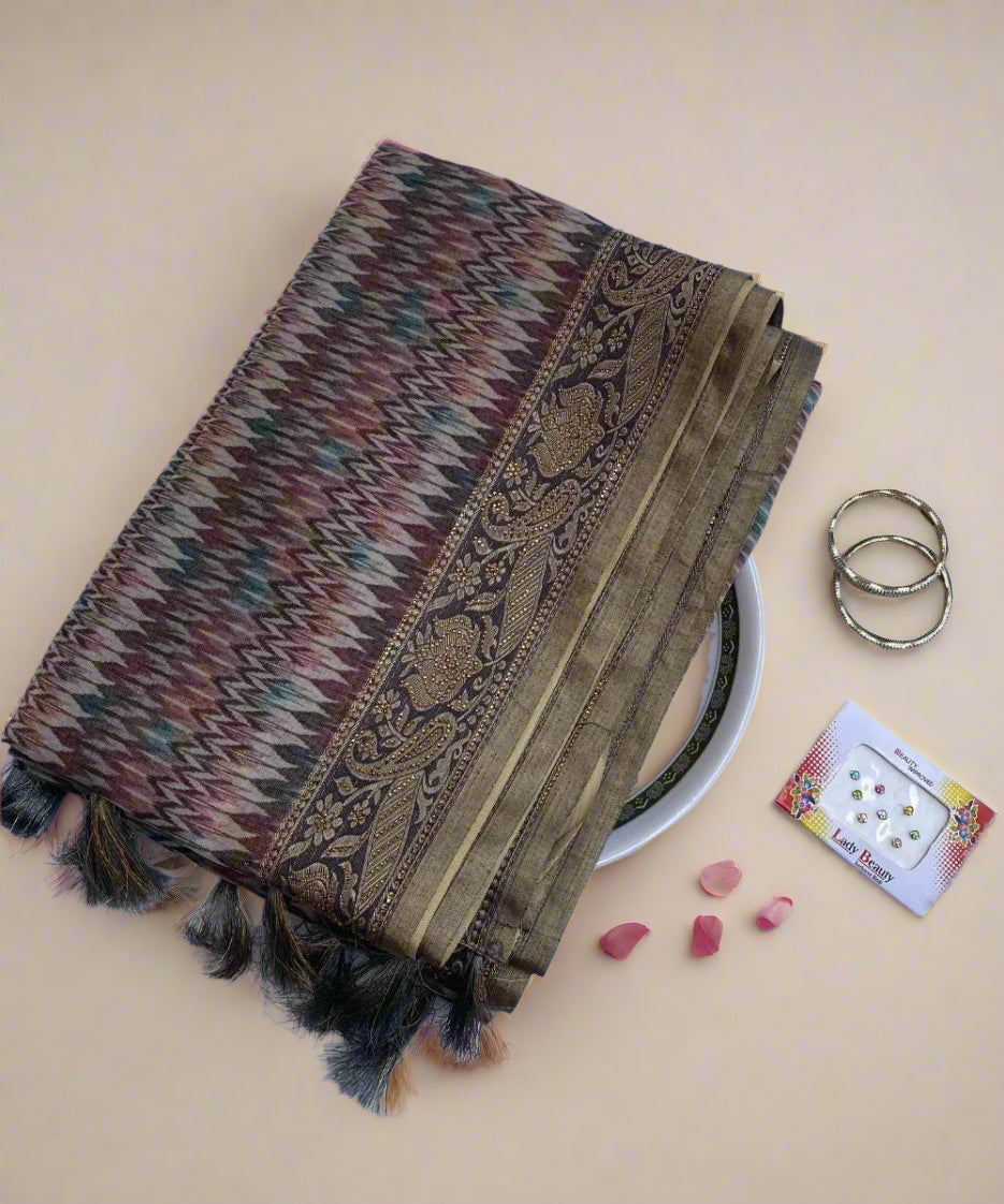 - Special Feature: The tassel detailing on the saree adds an elegant touch, making it perfect for office gatherings and parties.