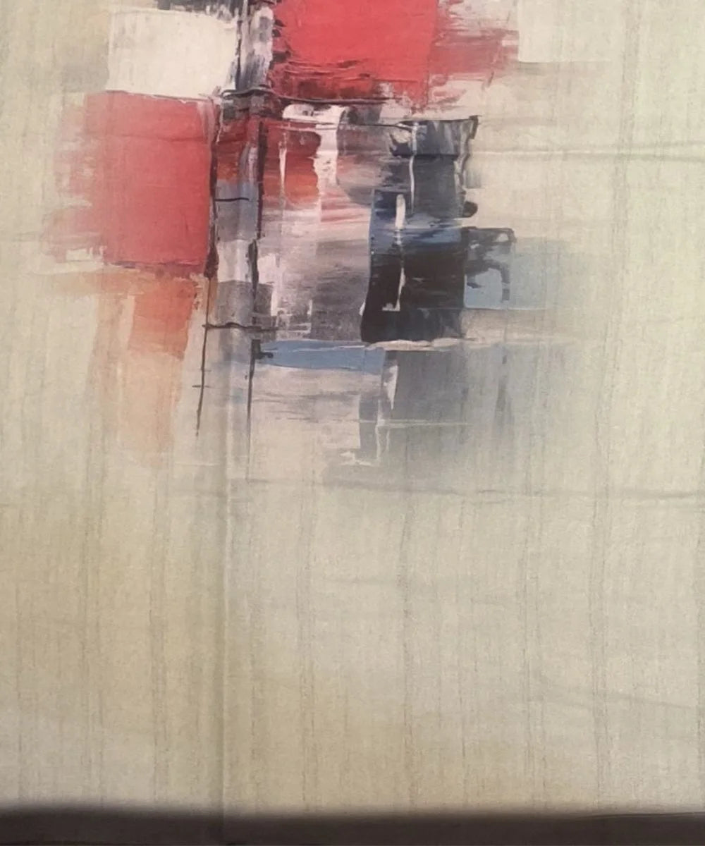 - Description: It's a beautiful abstract print saree that comes with a contrast blouse. Crafted from a lightweight fabric, it drapes beautifully, offering a graceful silhouette.