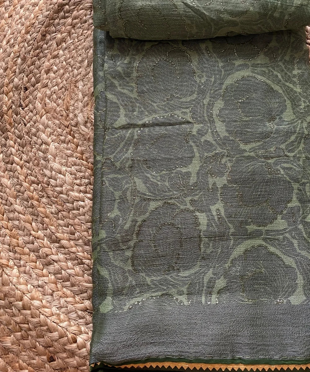 - Description: Radiate beauty with this stunning floral print saree, designed for festive elegance.